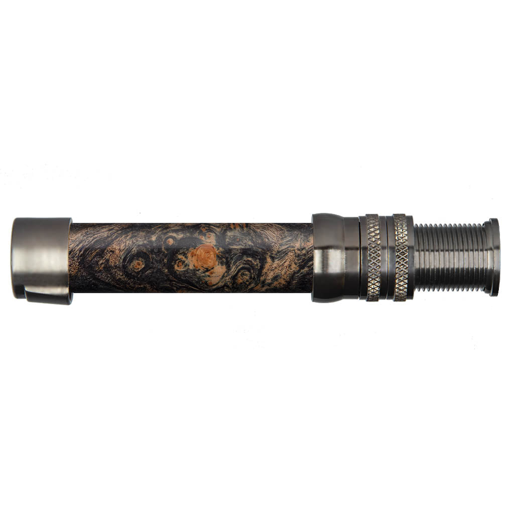 Mother Nature has again taken her color pallet and created burl that have numerous configurations that complement finely crafted fly rods. Most common are lighter toned burls with colorful eye patterns and swirls in the grain. These range from a blonde color to lighter brown tones. Another variation is cream spalt that provides white tones throughout the burl.