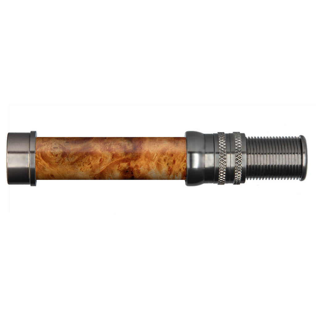 Mother Nature has again taken her color pallet and created burl that have numerous configurations that complement finely crafted fly rods. Most common are lighter toned burls with colorful eye patterns and swirls in the grain. These range from a blonde color to lighter brown tones. Another variation is cream spalt that provides white tones throughout the burl.